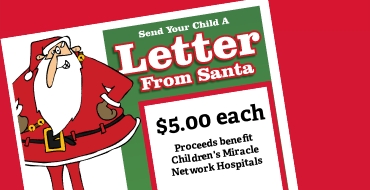 Send your child or loved one a personalized letter from Santa. Letters are $5.00 each. Proceeds benefit Children's Miracle Network. Order deadline is 11/07/25.